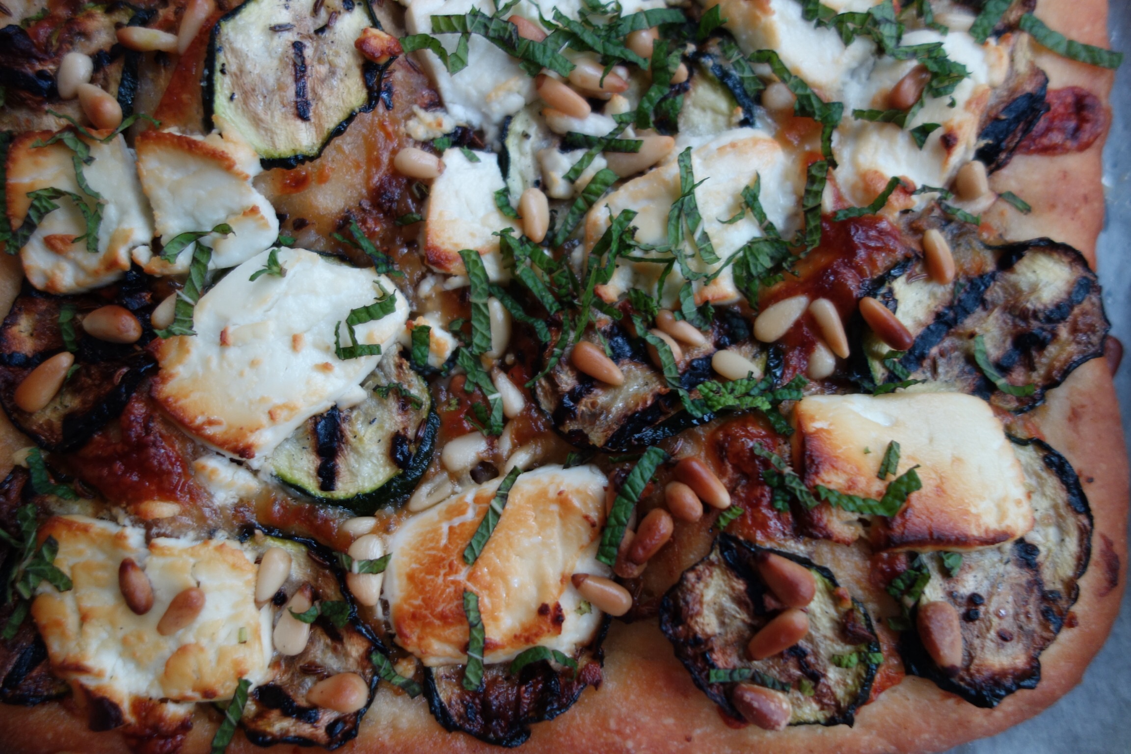 Avoid posting links to the NY Times as the references were quite often archived or its 10 articles per month limit would kick in, but now there’s a treasure trove of recipes online. This pizza is a based on a topping from its pizza-without-the-dough article, with an injection of flavour inspired by the Incredible Spice Men. Start with a paste made from six roasted garlic cloves squeezed from their skins, a splash of olive oil, and a heaped teaspoon of toasted caraway seeds and half a teaspoon of chilli flakes. Smear the paste over a partly cooked pizza base then scatter a little mozzarella over. Slice a zucchini into thin rounds and char each piece slightly on a grill pan set over high heat. Toss the slices in a little oil and arrange over the base, cover with a small log of goat cheese also cut into rounds and a generous sprinkle of pine nuts. Bake for a further fifteen minutes or until the cheese has browned, then sprinkle with a half cup of finely shredded mint before serving.