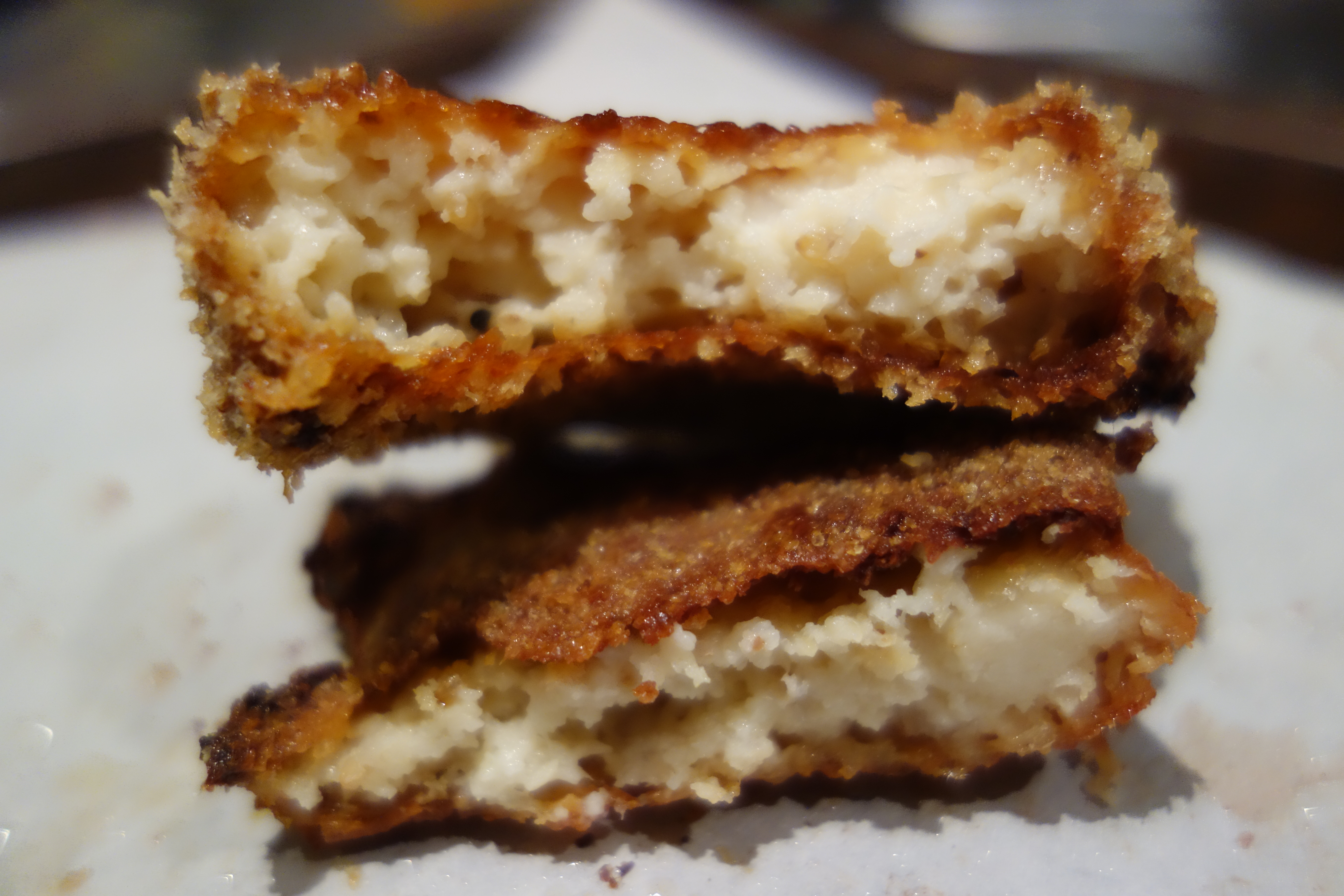 Have been serving batches of 101’s Millet Croquettes alongside stews and casseroles rather than a side dish of potato mash or polenta. However find that the brands of semolina available at the local supermarkets need much more liquid than the single cup of milk and water specified in the recipe. It’s more like five cups (three of milk plus two of water) required to make a creamy filling. Also omit the shredded greens for the sake of keeping the croquettes appealing to picky eaters (who find shredded greens hidden in their food detestable), and toast the millet grains in a little oil before simmering them to provide a contrasting texture within the croquette centres. Lastly, double dip the croquettes (egg, panko, egg, panko) before arranging on paper lined trays, drizzling with olive oil, then baking at 200ºC for about 30 minutes, flipping once during this time, until golden and crunchy.