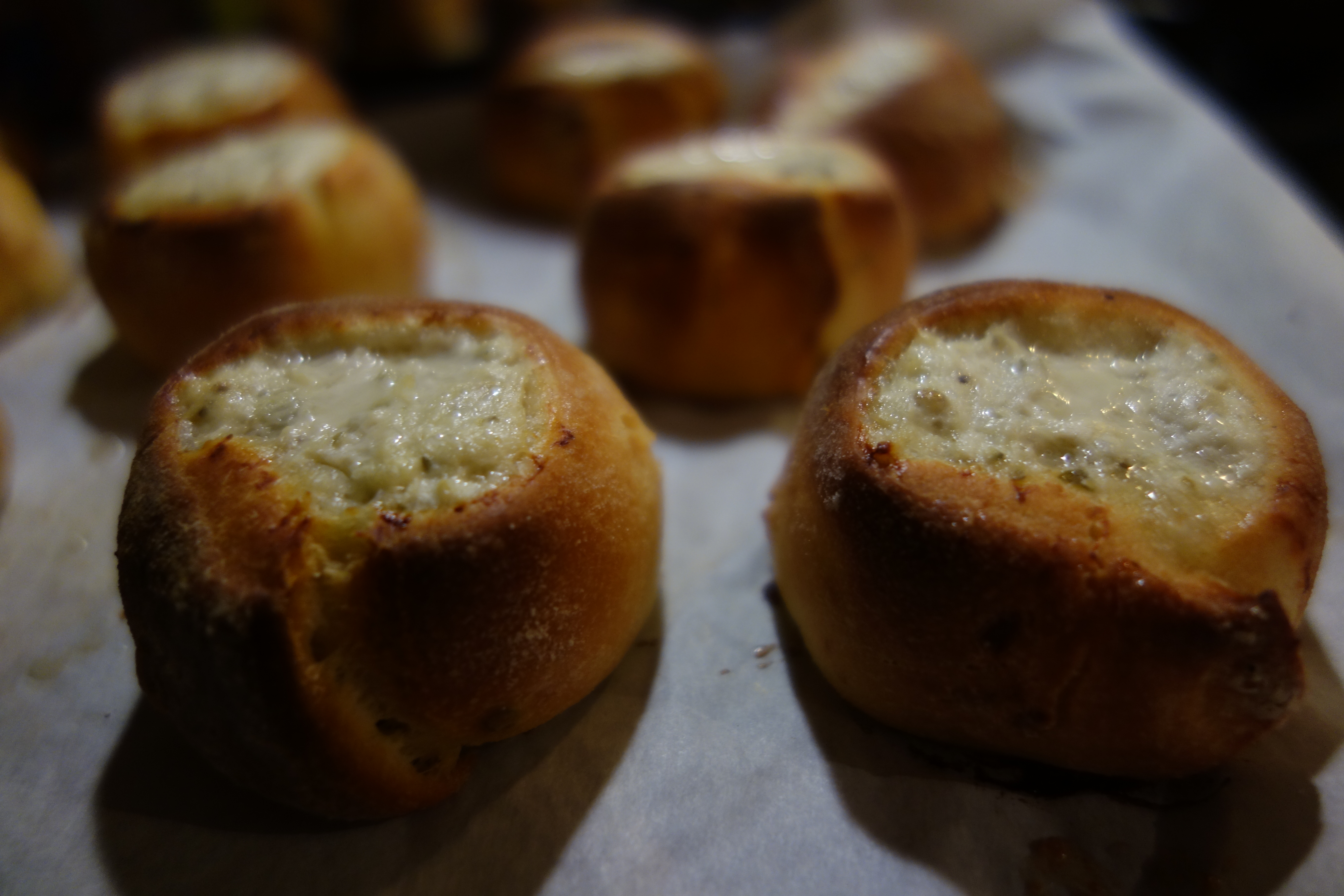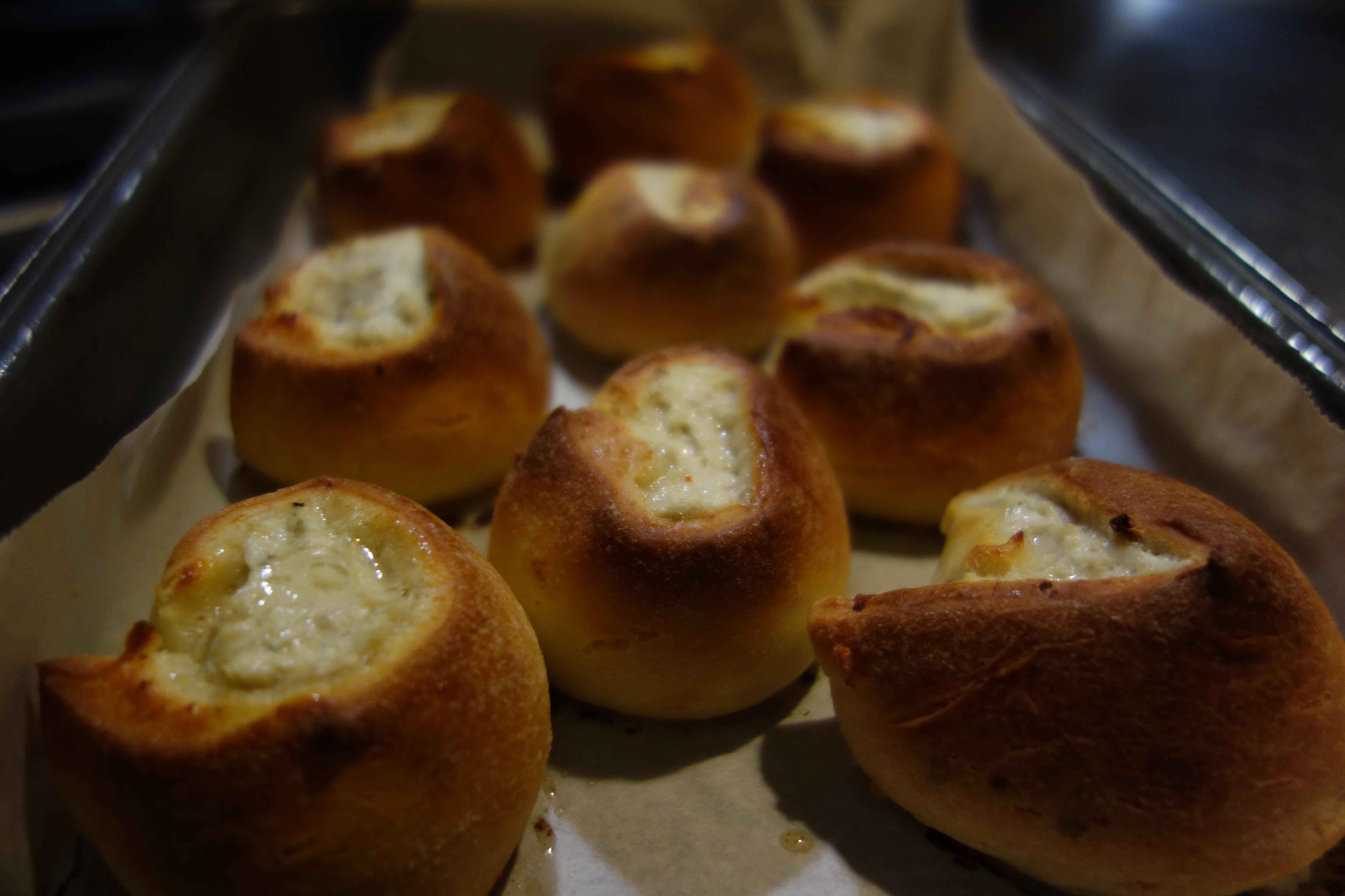 Made these dumplings using a teaspoon of dried chilli and a tablespoon of picked, fresh thyme leaves in place of the pickled chilli and parsley specified in the recipe – found the dough to be very sticky so worked in quite a bit of flour to make the kneading manageable. Similarly, replaced the dill in the yoghurt sauce with thyme and some snipped chives.