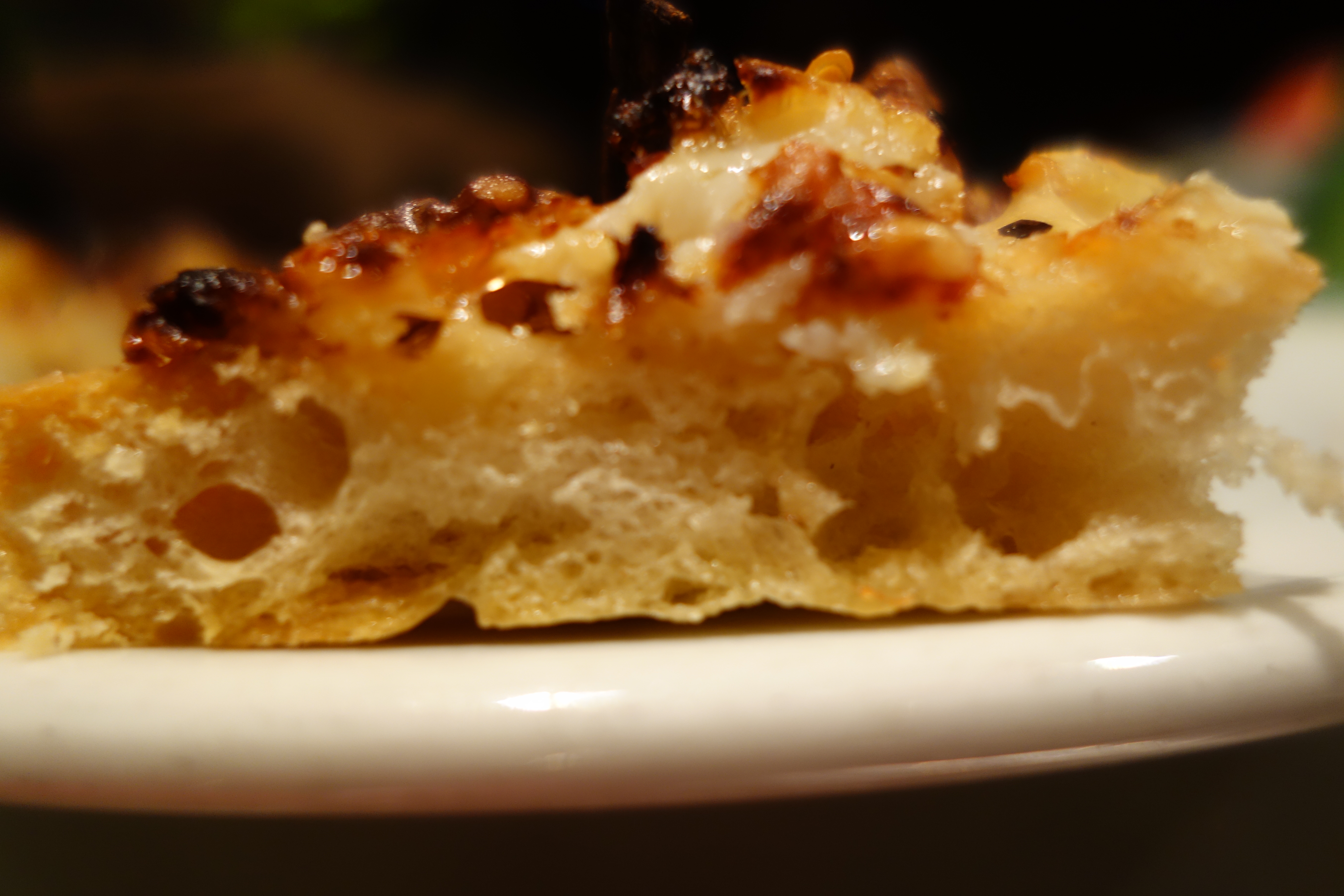 Stretch & massage dough so that is about 5mm thick. Slice into tray-sized slabs and ease onto paper-lined and oiled trays. Collect trimmings, knead lightly and roll or stretch to make four large bases. Allow to rest for about 30 minutes while oven is preheating to 220°C. Brush with oil or spread with tinned, peeled, and chopped tomatoes mixed with a little tomato paste. Bake for 15 minutes, then remove the bases from the oven. Allow to cool slightly before adding toppings then return to the oven to bake until bases are crisp.