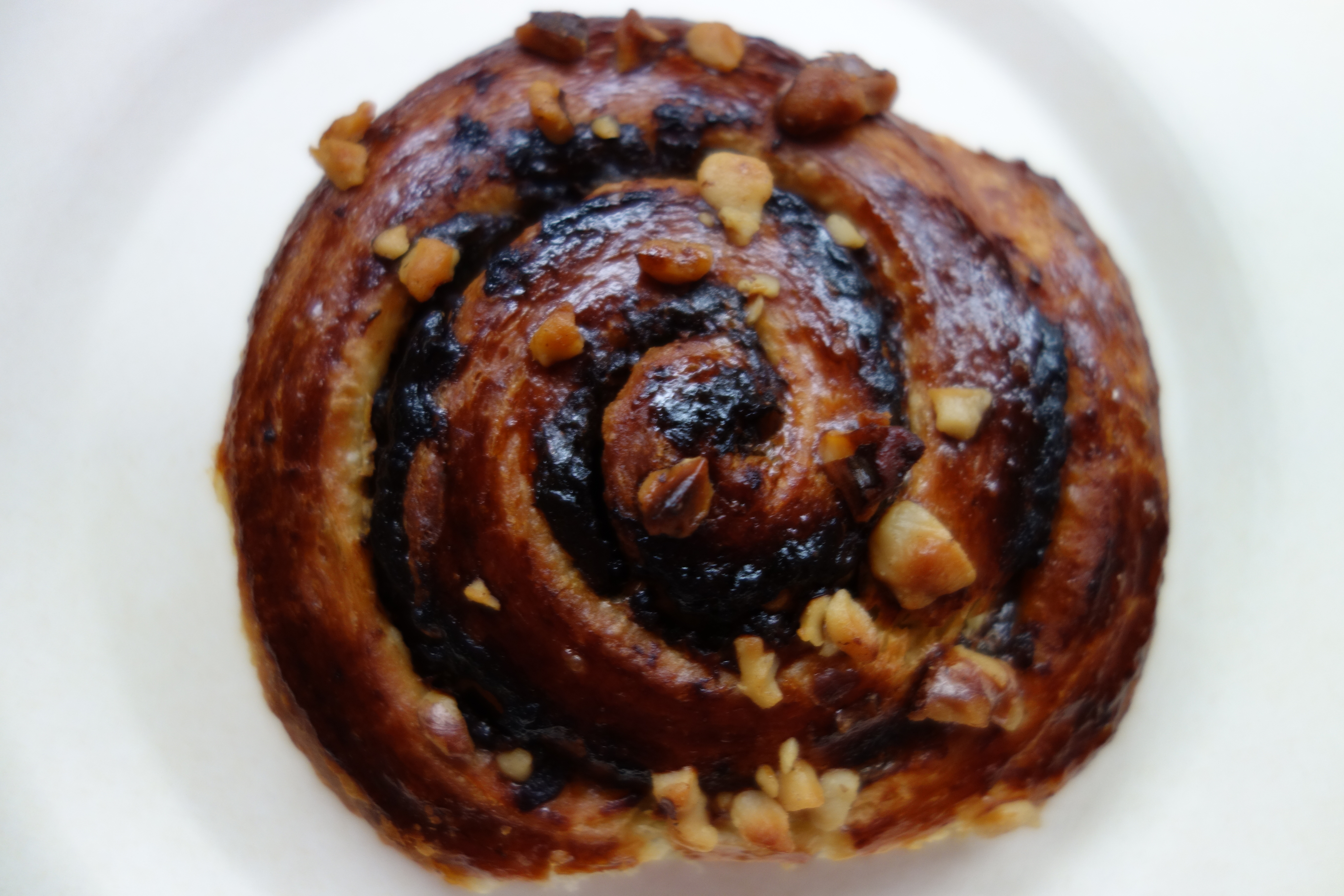 Modified the Prune & Ginger Tart filling from Hemsley + Hemsley to spread in this week’s Danish. 250g prunes, 3 tablespoons of coconut oil, 2 teaspoons grated fresh ginger, a pinch of salt, and 2 teaspoons of vanilla extract made a sticky ointment that reminded me of the strange jams that accumulated in the back of my Grandmother’s pantry (fig & ginger marmalade, rhubarb jam, feijoa jelly). Applied half the paste to a roll of NYT Danish Dough, then sprinkled the scrolls with crumbled walnut before baking. Dolloped teaspoonfuls of the other half of the prune mixture into the batter of a batch of berry oat bars as a substitute for raspberries, making them prune and ginger oat bars, I guess.