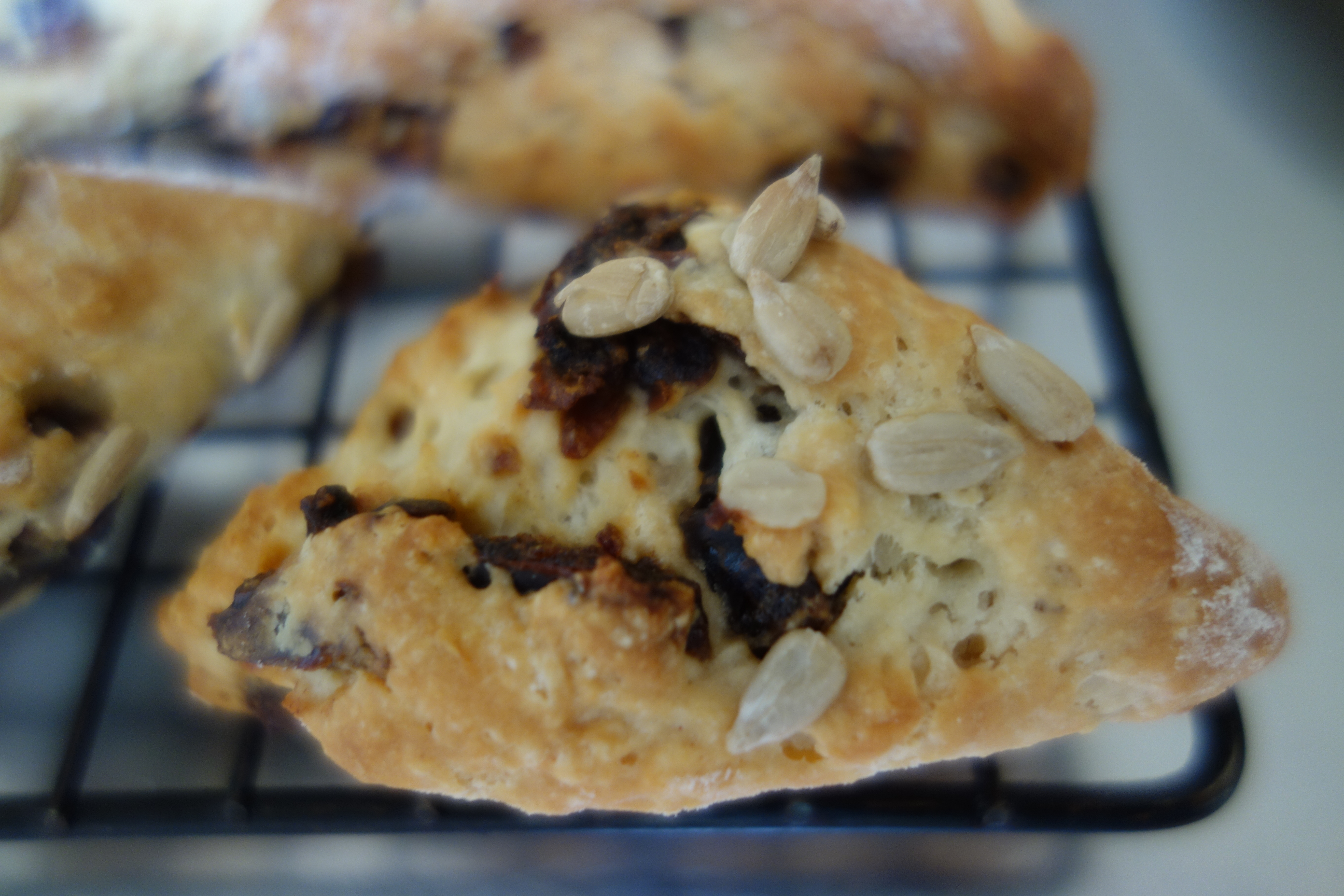 Self Raising Flour Sugar Salt diced Butter chopped Dates Greek-style Yoghurt Oat Milk Zest and juice of the last Blood Orange of the season Sunflower Kernels for sprinkling |