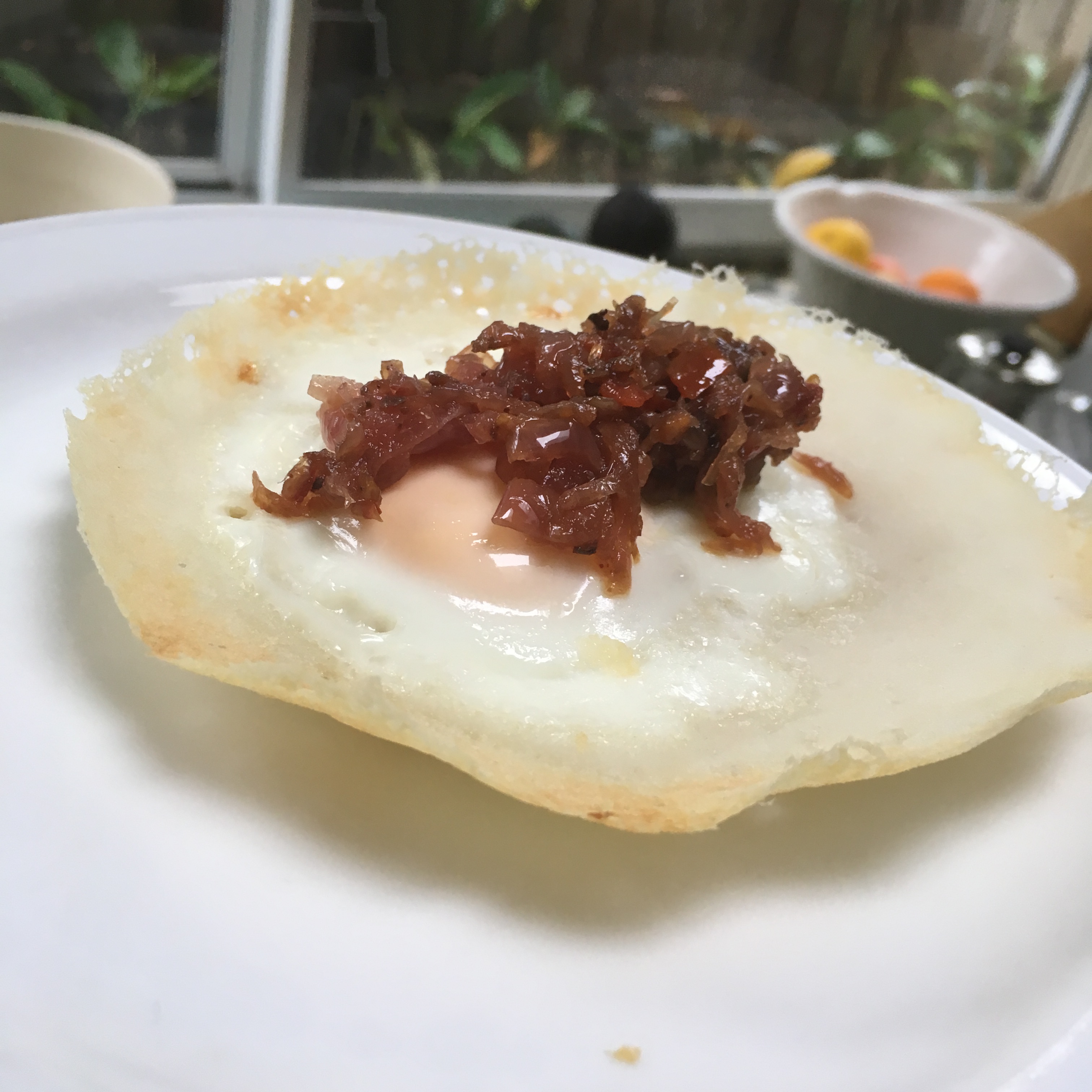 Tackled egg hoppers using a recipe from the guardian served with onion sambal. Didn’t have all the spices on hand, so winged it a little with black cardamon, fenugreek and two fresh chilli.